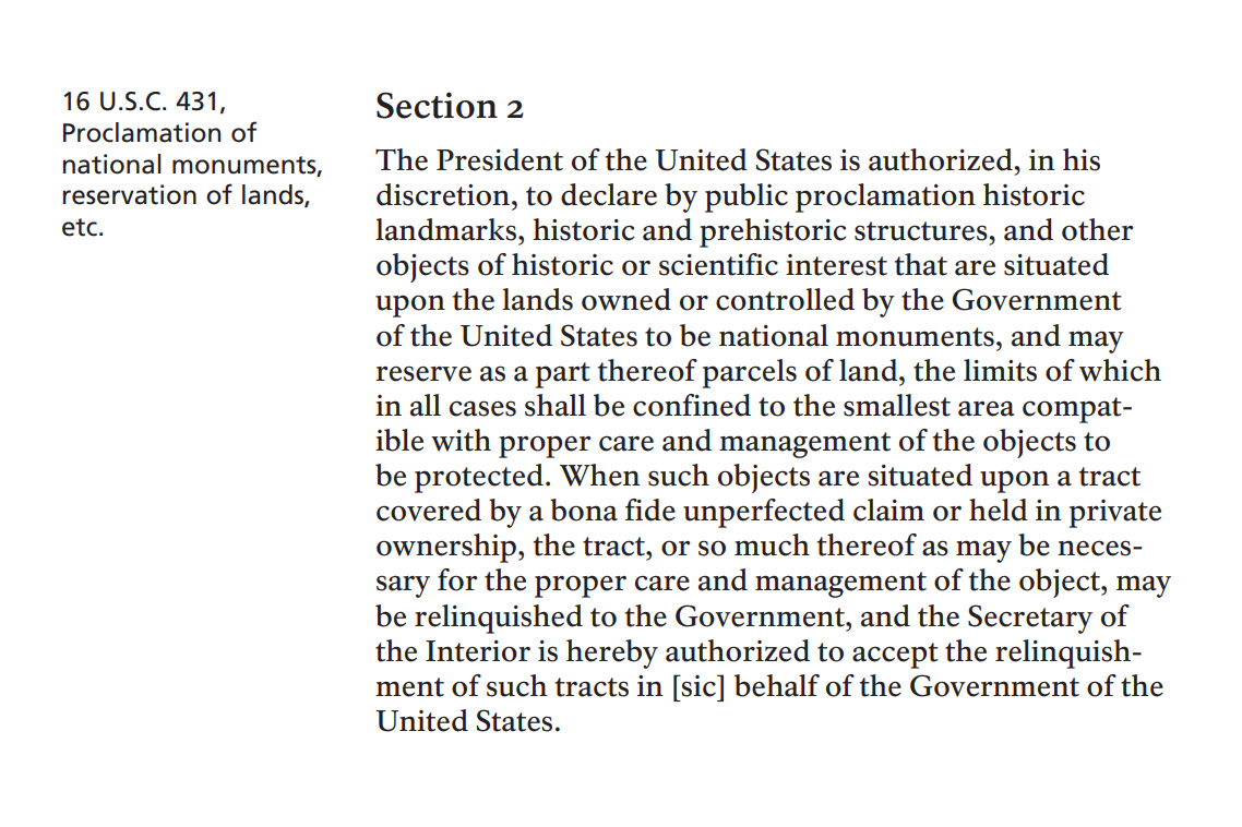 And here’s section two of the Antiquities Act, as its stood since 1906: