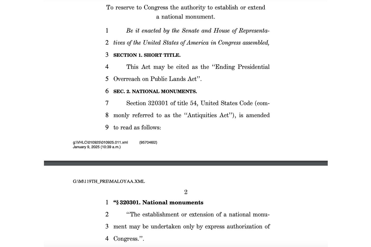 Given that Republicans have a very slim majority of 53 seats in the Senate, and to avoid a filibuster a bill requires 60 votes, how likely is it that the Ending Presidential Overreach on Public Lands Act could become law? It’s not. But I don’t think that’s the end goal here. The Trump administration and its allies in Congress are talking about packing most of their major priorities into a single omnibus bill that they would use budget reconciliation to pass (which skips the filibuster and requires only a simple majority in the Senate). Omnibus bills draw their language from other pending legislation. This bill presents the authors of that hypothetical omnibus the simple, clear language they need to forever alter the Antiquities Act.