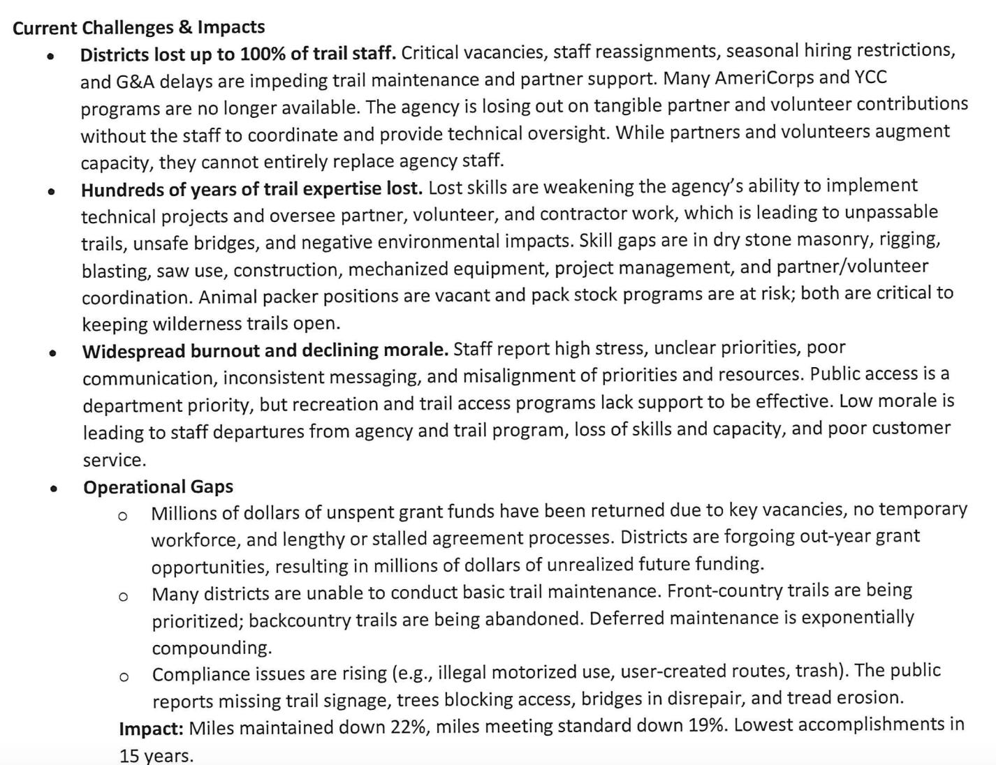 But that heroic effort can only last so long, and things are starting to crumble. One report from National Forest Managers in Washington illustrates how: